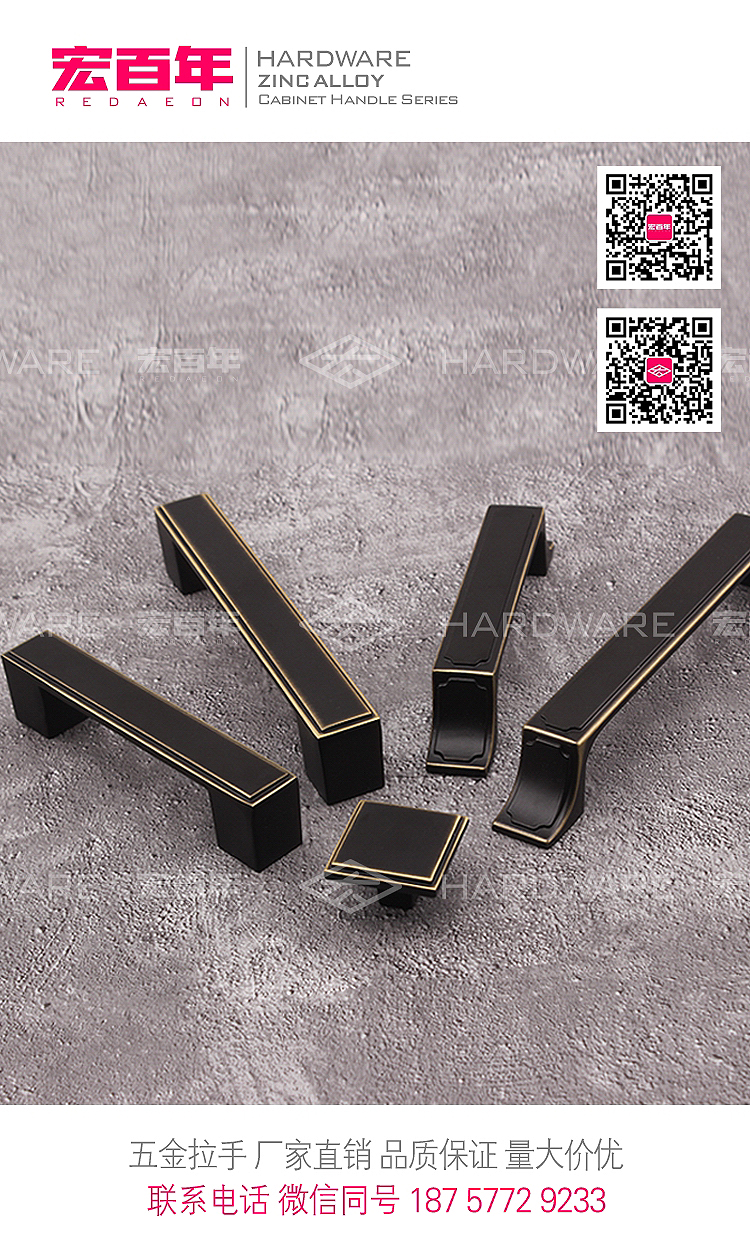 美式拉手 拉手批发 锌合金黑黄铜拉手